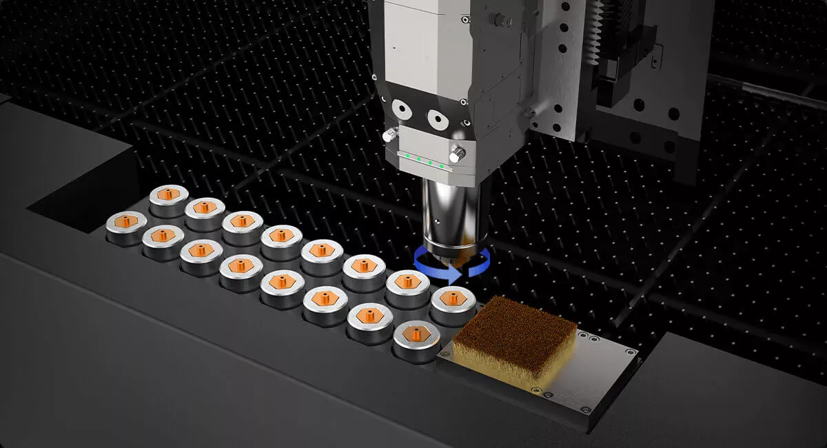 Tự động hoàn tất việc thay thế vòi phun, giúp gia công tự động.